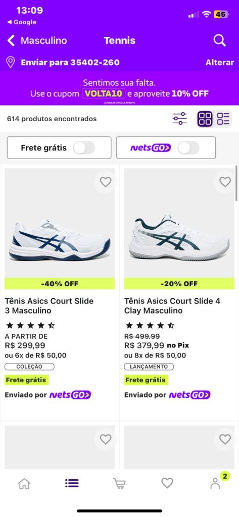 print das telas
